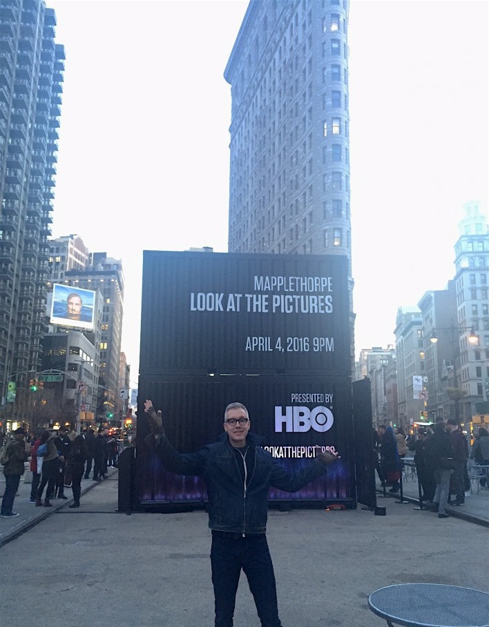 You never know what you’ll see while walking home from work in Manhattan. On Friday, POZ colleague Jennifer Morton and I headed to the famed Flatiron Building plaza to check out a pop-up installation for the upcoming HBO documentary Mapplethorpe: Look at the Pictures.