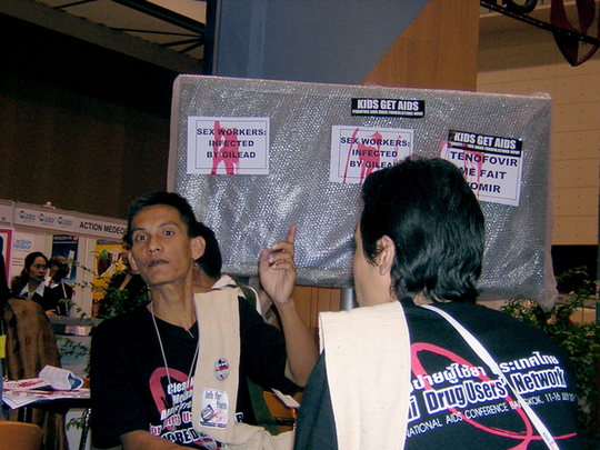 Attention was brought to the stopped Cambodian trial by a rather dramatic demonstration at the International AIDS Conference in Bangkok.