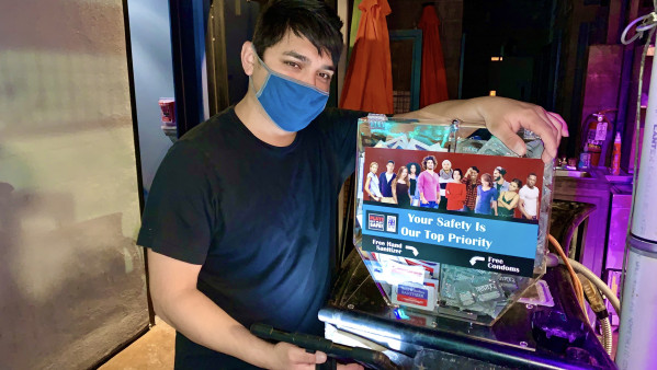 The dispensers are up at establishments where people now have the opportunity for outdoor dining and limited indoor use. At FACES and Badlands, two popular gathering spots in the Midtown District, people are given the option and opportunity to take free condoms, hand sanitizers—or both.