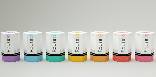 First are Rouse condoms. Each style of Rouse condom is branded with an image of a different sexual spirit animal. For example, the ribbed condoms are the Tiger, the jumbo ones are the Elephant and the long-love condoms (with a desensitizing cream so the wearer doesn’t wear out fast) are the Rabbit. For Pride, each box gets a new color so that when the unique boxes are placed side by side, they create a giant rainbow. The Cheetah (condoms with raised dots to “get your partner there faster”) is red, the Monkey (contoured) is orange, the Lion (plain condom) is purple and the Bear (the ultra-thin bare condom) is yellow.
