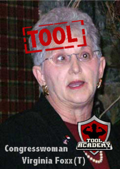 Virginia Foxx, you are a tool. And you’ve broken the glass ceiling in the Tool Academy. This is also the first time a Tool Academy alum’s stupid remarks have been caught on video, which may make Foxx a lock for Tool of the Year honors.