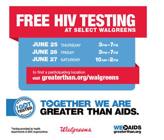 You can be tested at Walgreens in the next three days for free. Also, any Department of Public Health or HIV clinic. To find a place for testing Click Here, just put in your zip code to get a site. As we approach National HIV Testing Day, June 27th, it is the right thing to do for your health. Knowing your HIV status is living hold and healthy.