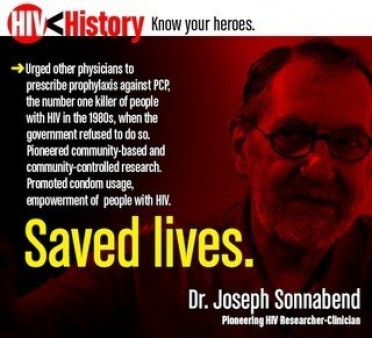 Sonnabend provided the encouragement and intellectual foundation for the people with HIV empowerment movement, spoke the truth about how sexually-transmitted infections were facilitating the spread of the epidemic, midwifed the activist team of Michael Callen and Richard Berkowitz, promoted PCP prophylaxis when the federal government refused, first proposed the concept of “safer sex,” conceived of community-controlled collaborative research, launched the first AIDS-related publication and the first AIDS-related civil rights litigation was when his landlord kicked him out of his office for treating people with AIDS.
