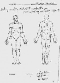 Michael and his friend Dorian Johnson where walking down the middle of the street when Officer Wilson asked the boys to get out of the middle of the street. According to Dorian, they had a few words, Officer Wilson pulled off, then backed up. After trying unsuccessfully to pull Mike Brown into the car through the window, Officer Wilson then got out of the car and started shooting. They started running after the first shot. Two additional eye witness confirms the story of Dorain that Mike Brown, eventually stopped put his hands in the air and Officer Wilson continued to shoot. A preliminary autopsy was released today, indicating that there were at least 6 shots to the front of the body with 2 being to the head.