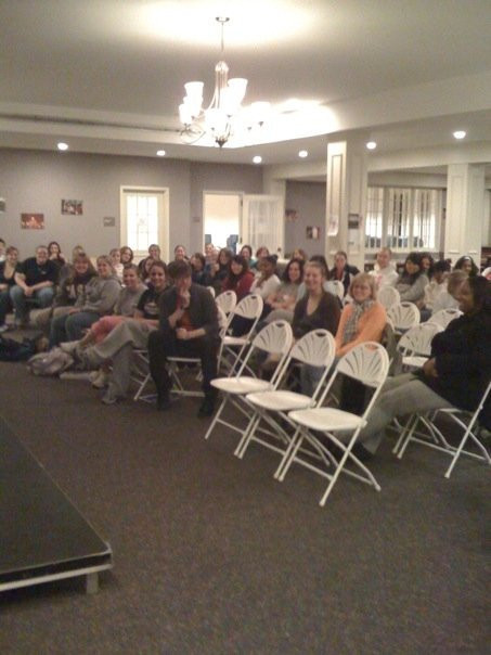 This is at the end of the program... can you find me? I’m thinking of doing a “Where’s Waldo?” picture at all future talks, though I’ll hide better next time. What’s cool is that there were about 60 students at the 9 pm event in the student center- and it wasn’t a mandatory program.