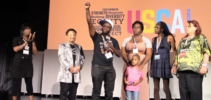 Protests have been a staple of HIV/AIDS gatherings since the epidemic began and USCA has an intriguingly progressive policy toward them. Groups interested in staging a protest, or “action,” are asked to submit their request in advance in order for time in the program to be made available to them. NMAC generally supports such activities and Kawata often joins these groups onstage during their action.