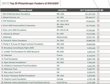 Here are the 2017 top 20 funders of HIV/AIDS (global and domestic).