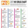 This quick-reference chart compares available HIV medication options, including adult dosing and dietary restrictions.